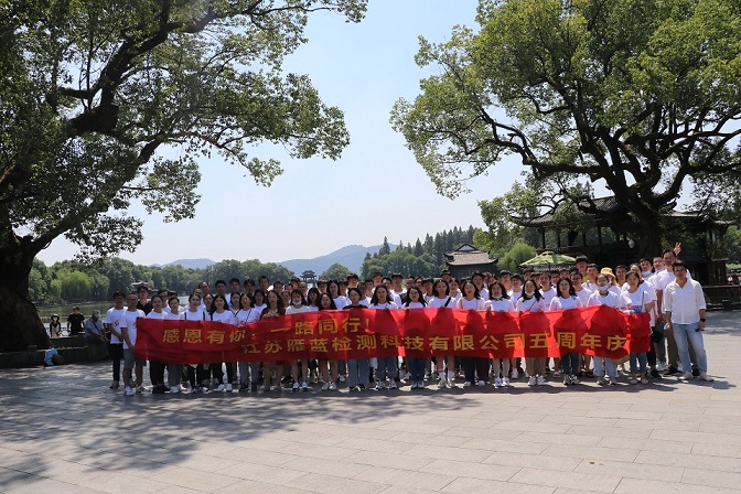 值此雁藍檢測成立五周年之際,公司工會組織全體員工兩日(9.5-6)杭州行團建活動,在做好個人防護的前提下,雁藍人著統一司慶文化衫,在杭州宋城、西湖、西溪濕地公園留下美麗的身影。